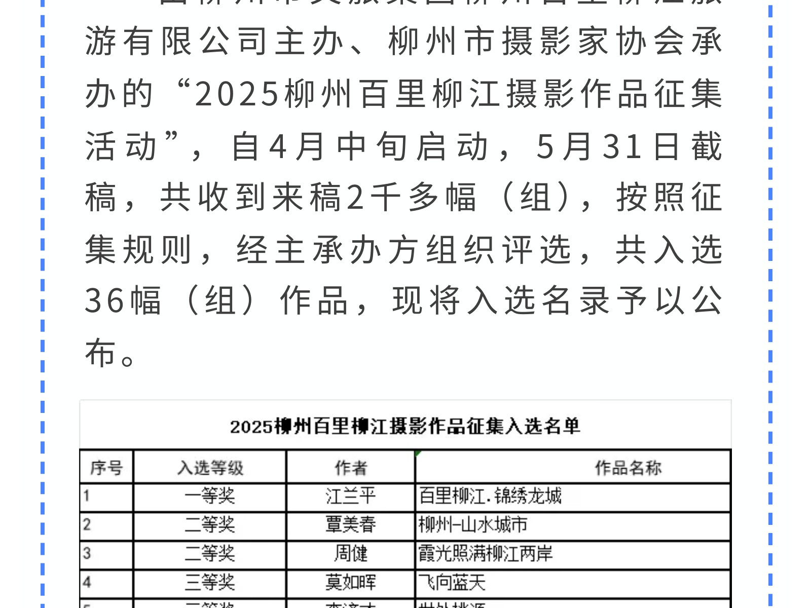 定格最美柳江!首屆“百里柳江”攝影大賽獲獎作品出爐! 發(fā)布時間:2025年07月16日 10時來源:本站原創(chuàng)瀏覽:199 人次