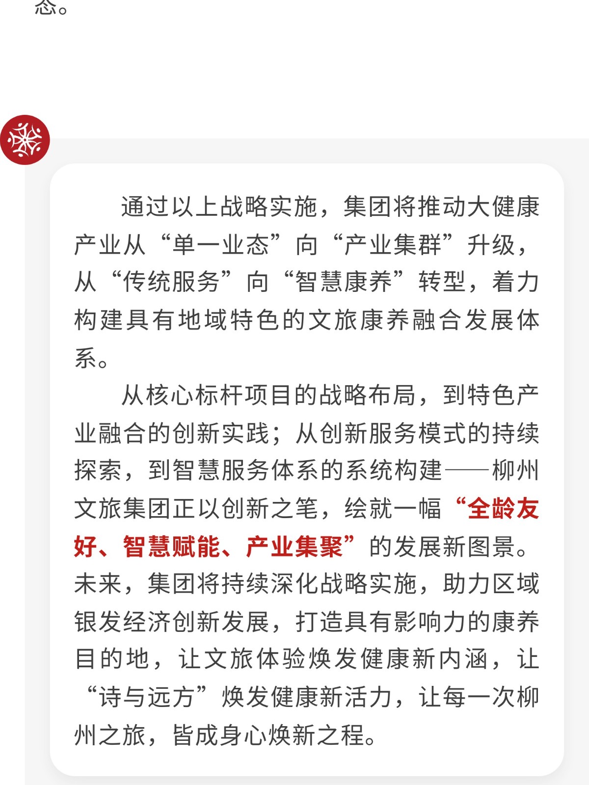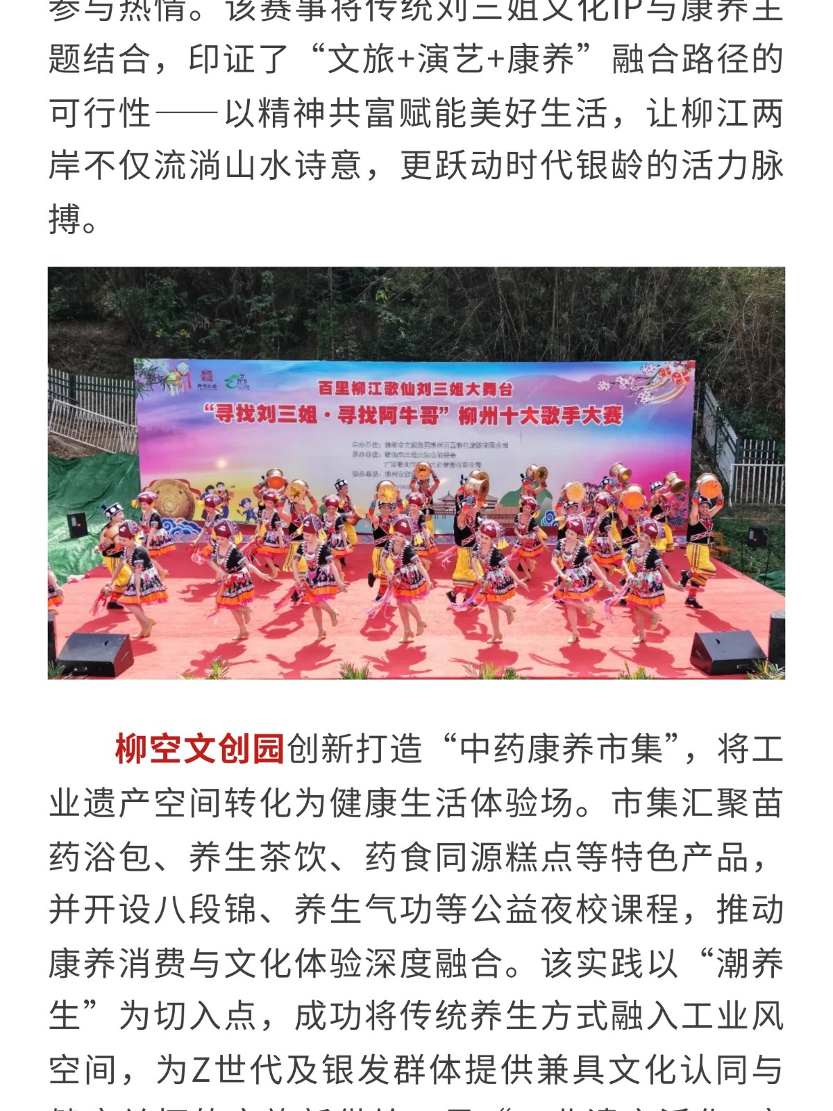 柳州文旅集團(tuán)推動(dòng)文旅康養(yǎng)深度融合,培育大健康產(chǎn)業(yè)集群新優(yōu)勢(shì) 發(fā)布時(shí)間:2025年09月05日 22時(shí)來源:本站原創(chuàng)瀏覽:194 人次