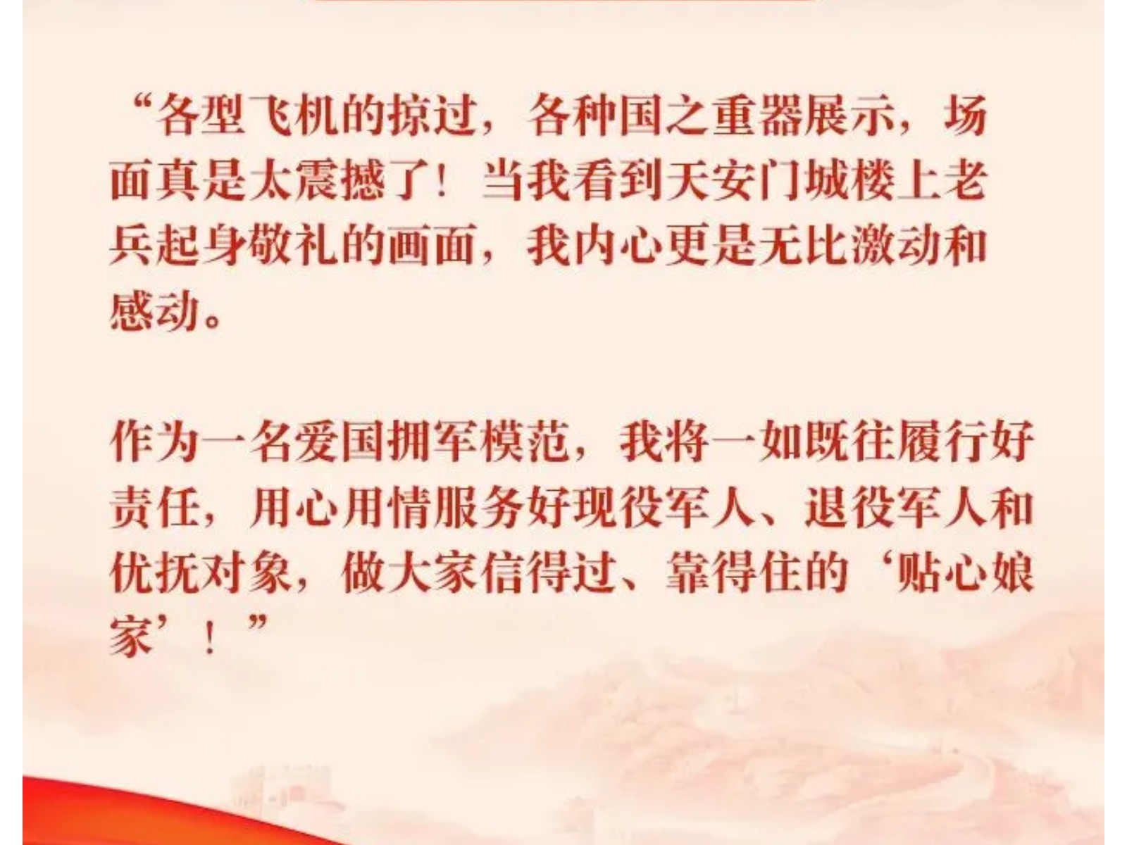 【最美擁軍人物】九三閱兵觀禮臺(tái)上的雙擁身影,他們是誰(shuí)? 發(fā)布時(shí)間:2025年09月19日 10時(shí)來(lái)源:本站原創(chuàng)瀏覽:187 人次