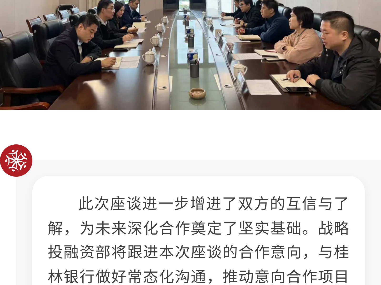 桂林銀行柳州分行到市文旅集團(tuán)開(kāi)展交流座談 發(fā)布時(shí)間:2025年11月28日 09時(shí)來(lái)源:本站原創(chuàng)瀏覽:75 人次