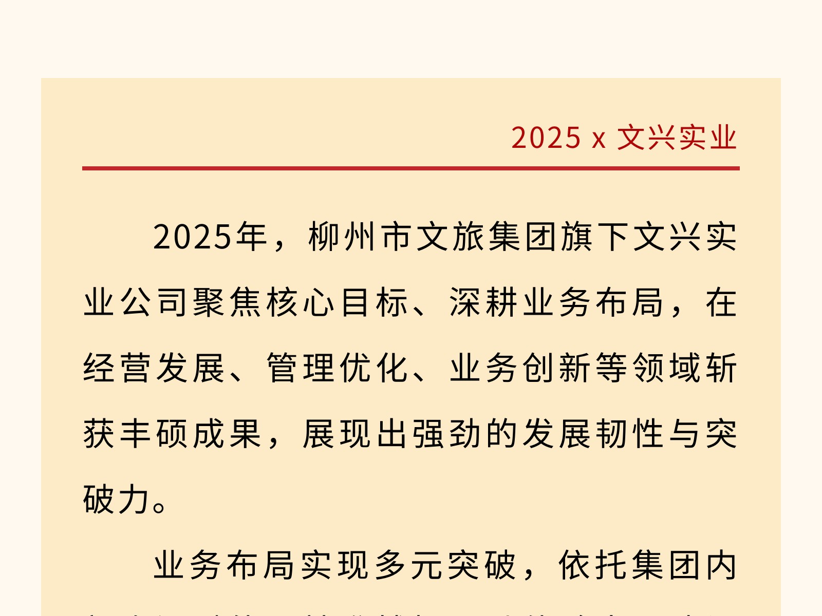 【文旅聚勢(shì)2025】多元?jiǎng)?chuàng)新拓新局,實(shí)干賦能高質(zhì)量發(fā)展——文興實(shí)業(yè)激活發(fā)展新動(dòng)能 發(fā)布時(shí)間:2025年12月24日 10時(shí)來(lái)源:本站原創(chuàng)瀏覽:89 人次