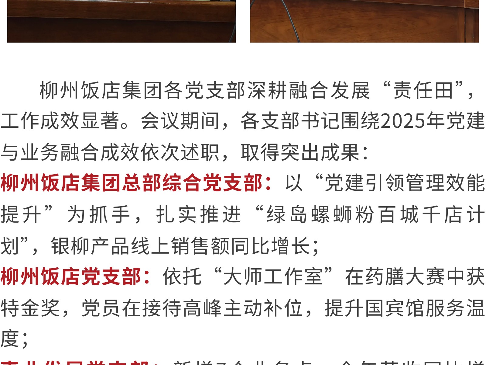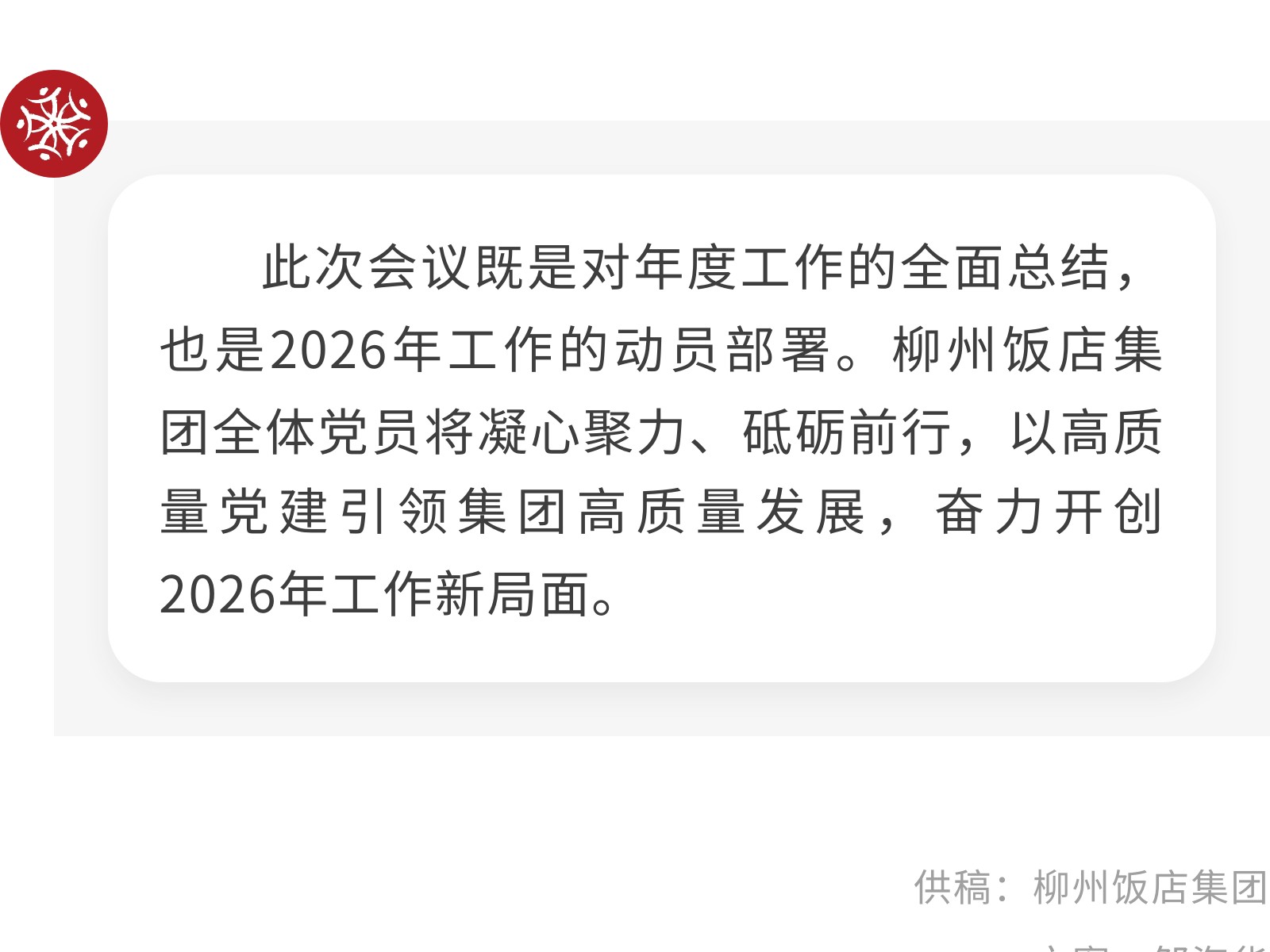 黨建引領(lǐng)聚合力 砥礪奮進譜新篇——柳州飯店集團2025年度黨支部工作考核暨支部書記述職述責評議會圓滿召開 發(fā)布時間:2025年12月30日 11時來源:本站原創(chuàng)瀏覽:111 人次