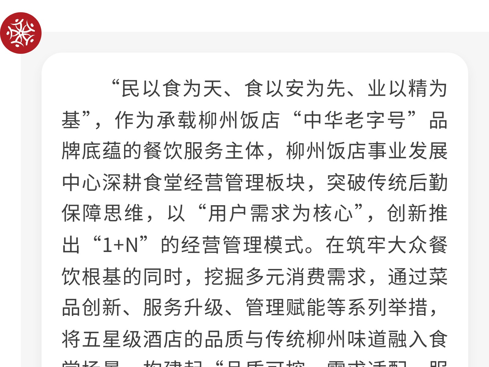 以“1+N”模式破局 重塑食堂經(jīng)營管理新生態(tài)——柳州飯店事業(yè)發(fā)展中心食堂管理創(chuàng)新實(shí)踐 發(fā)布時(shí)間:2026年01月22日 12時(shí)來源:本站原創(chuàng)瀏覽:53 人次