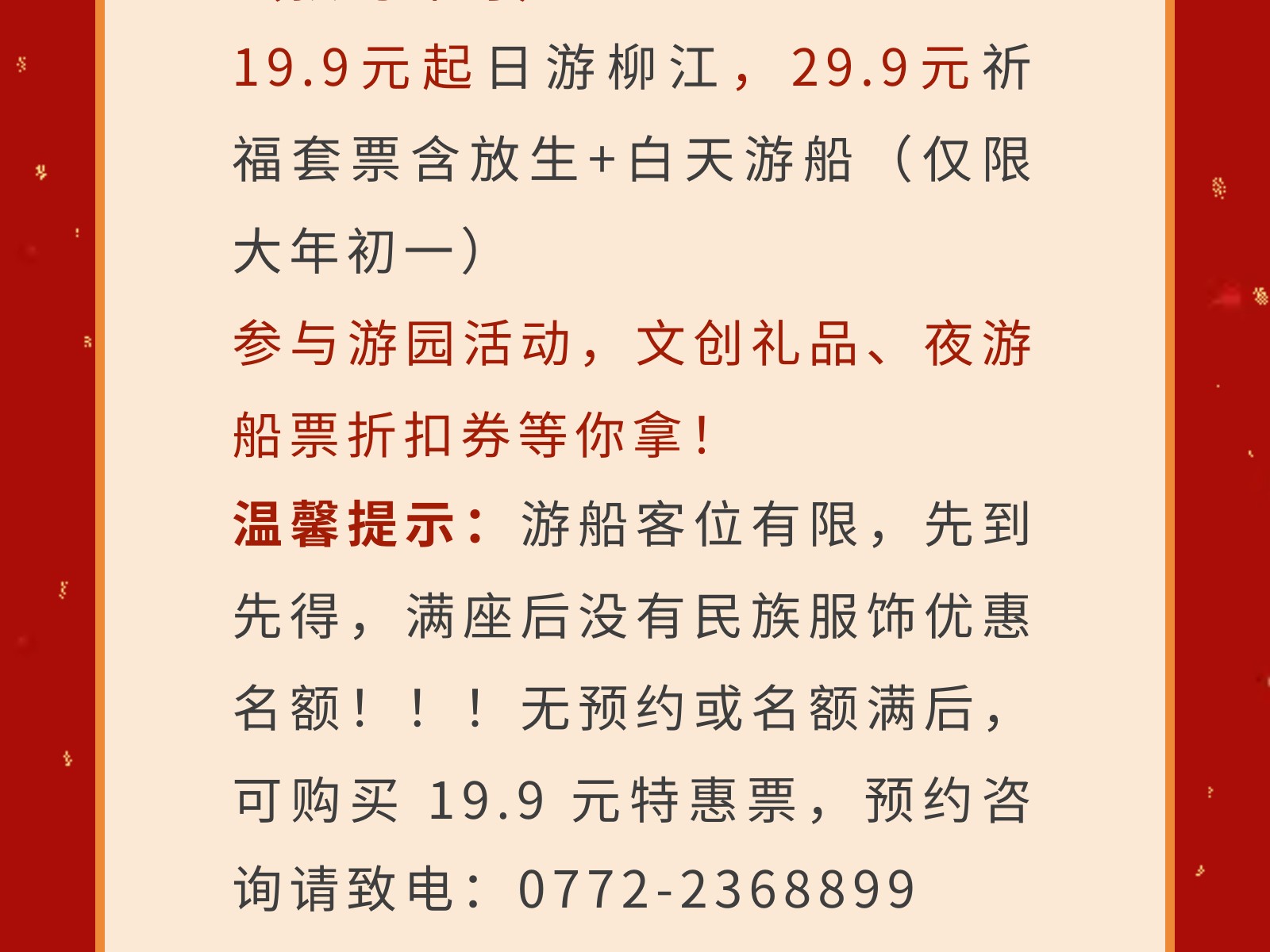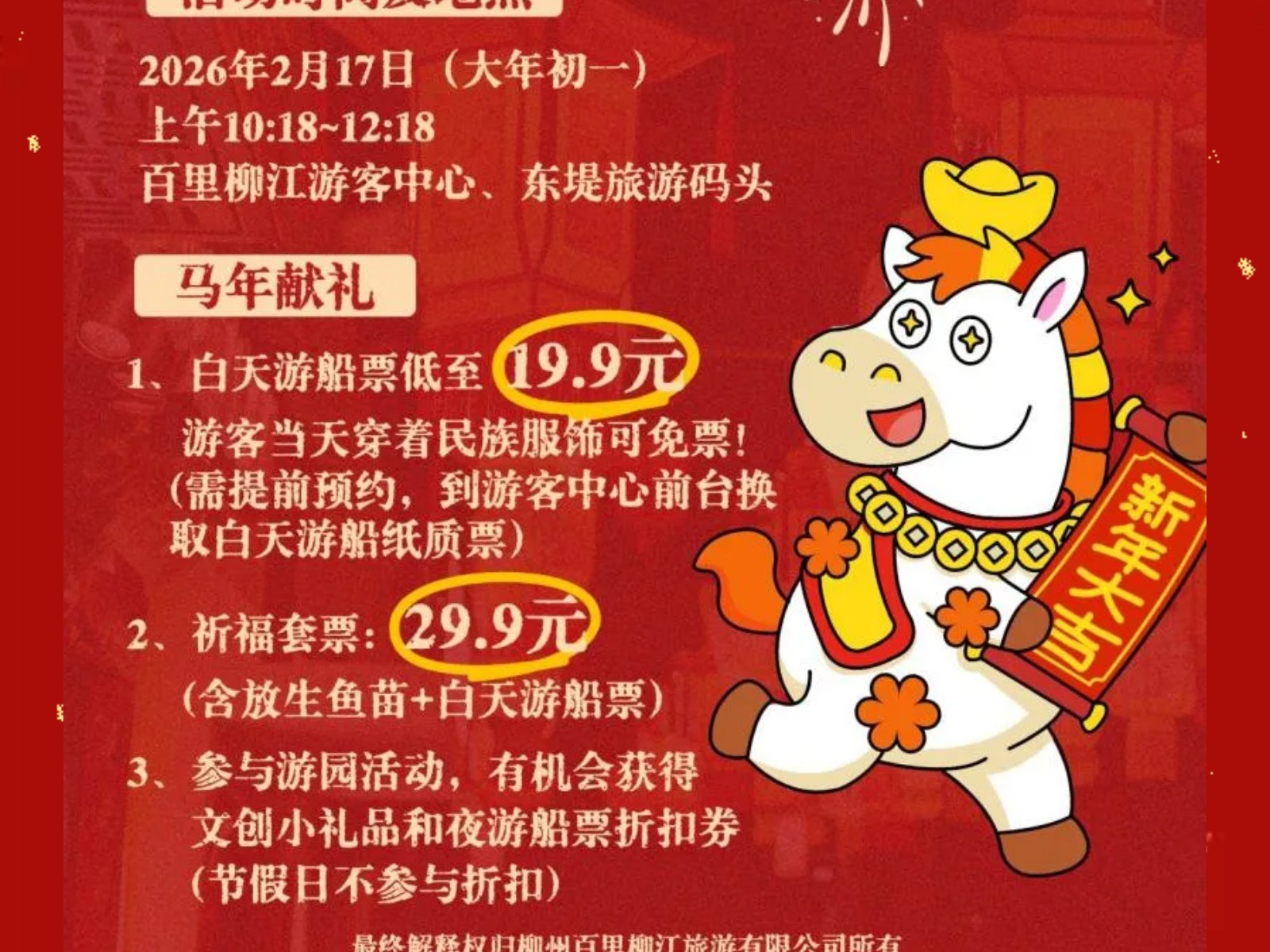 穿民族服飾=免船票!解鎖百里柳江景區(qū)大年初一“薅羊毛”的正確姿勢! 發(fā)布時間:2026年01月26日 12時來源:本站原創(chuàng)瀏覽:63 人次