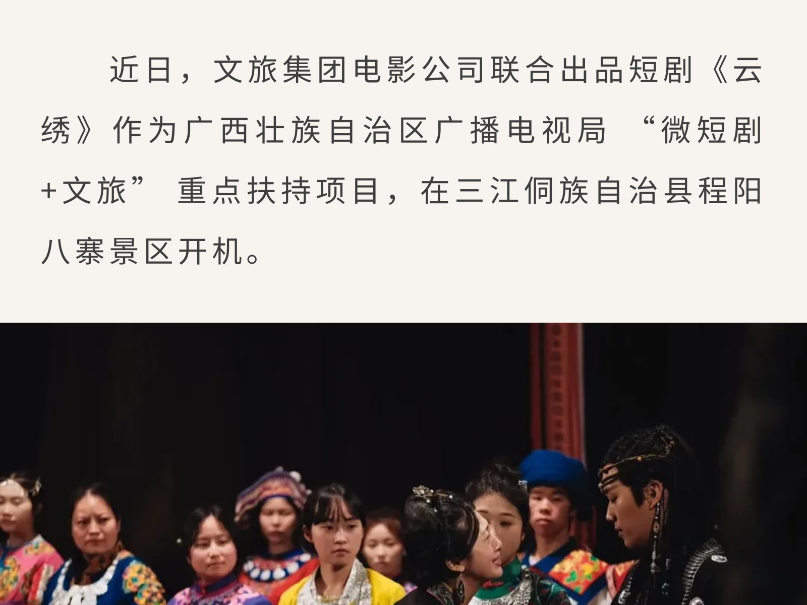 廣西“微短劇+文旅” 重點(diǎn)扶持項(xiàng)目《云繡》開機(jī),把非遺風(fēng)情拍入鏡頭里 發(fā)布時(shí)間:2026年03月06日 10時(shí)來源:本站原創(chuàng)瀏覽:48 人次
