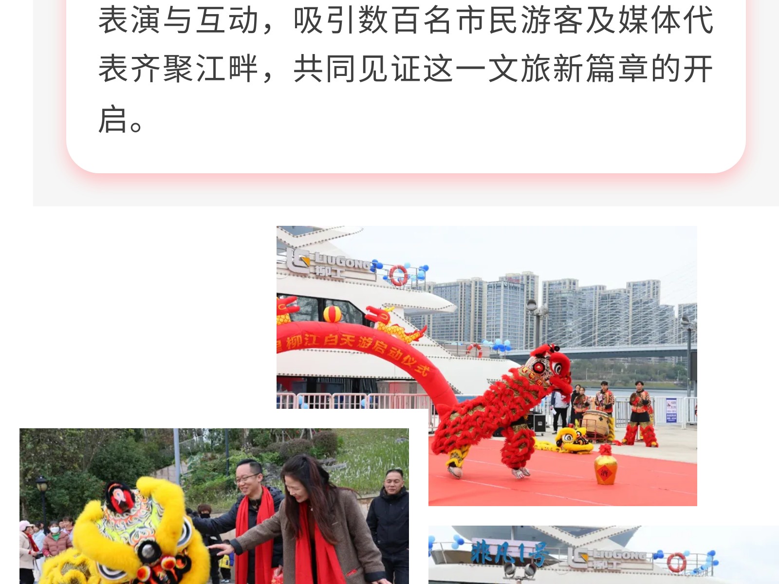 揚(yáng)帆啟新程!百?柳江?天游正式啟動(dòng),雙獅迎賓、禮炮鳴響開(kāi)啟春?盛宴 發(fā)布時(shí)間:2025年03月09日 15時(shí)來(lái)源:本站原創(chuàng)瀏覽:84 人次